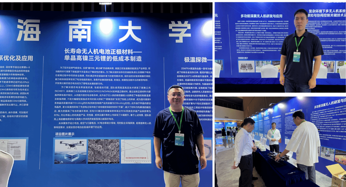 李满荣教授团队与北京高压科学研究中心陈斌教授团队合作的两项科研成果《多功能滚翼无人机研发与应用》及《长寿命人机电池正极材料——单晶高镍三元锂的低成本制造》亮相展会。澳门银河网上赌场