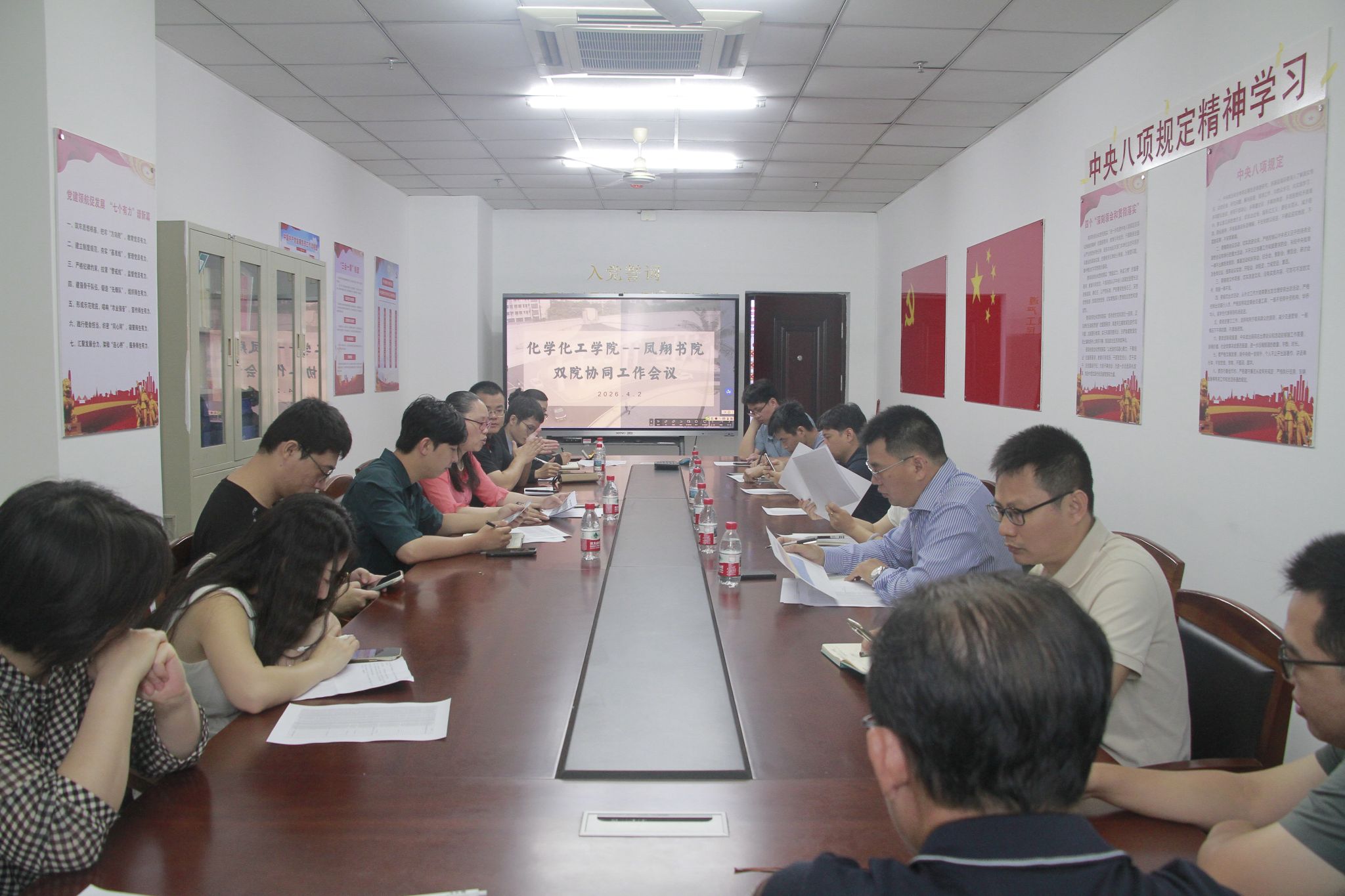 与凤翔书院双院协同工作会议在研发楼715会议室顺利召开。凤翔书院正处级辅导员梁丽仪,辅导员范成祯,学院党委副书记(主持工作)杨玮婷、应化系主任黎吉辉、化工系主任王敦,学院教务工作人员、就业兼职辅导员及部分学业导师参会,会议由学院党委副书记熊文军主持。